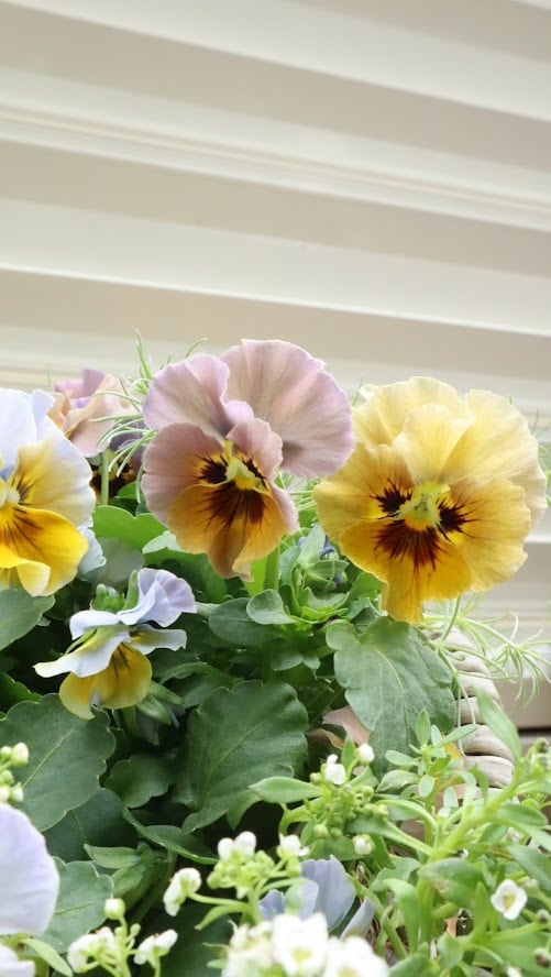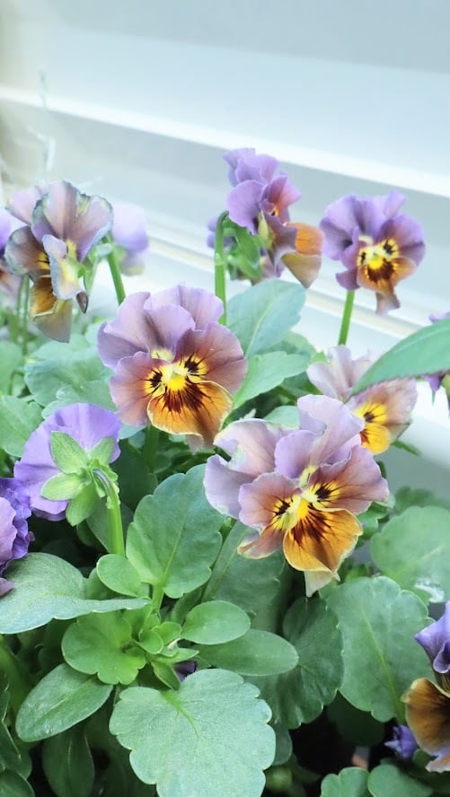 霧がかかったような幻想的な色合いで、上品なニュアンスカラーのビオラです。