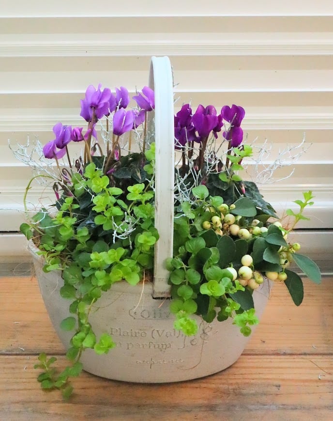 ガーデンシクラメン『ドラゴン』のライトブルー&ディープブルーの2色を使った寄せ植えです♡