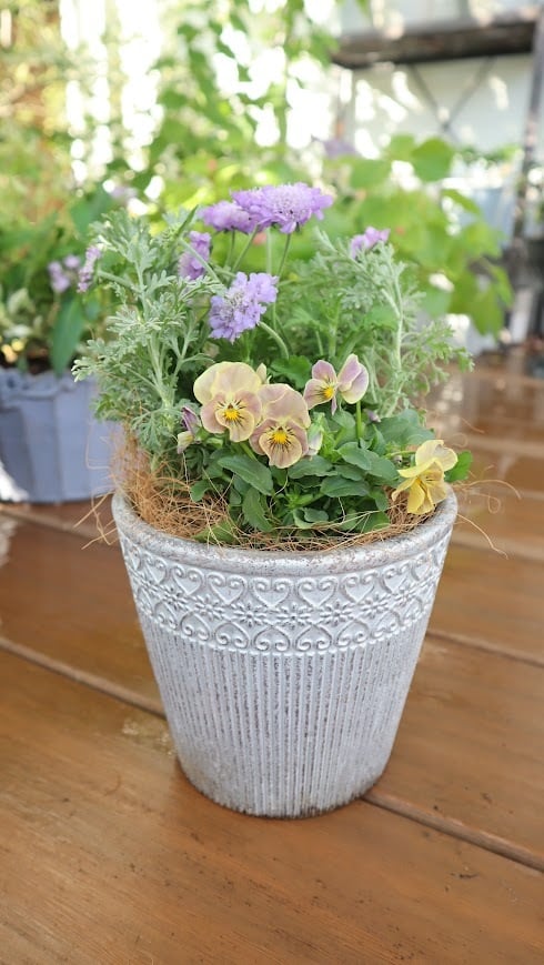 3苗で優しい華やかさのある寄せ植えを作りました。