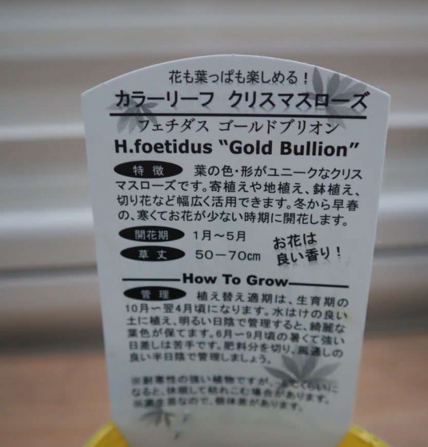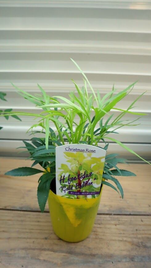 松村ナーセリーさんのカラーリーフ クリスマスローズ フェチダス 『ゴールドブリオン』は、暗くなりがちな冬のシェードガーデンを照らす、黄金葉の原種系クリスマスローズです。