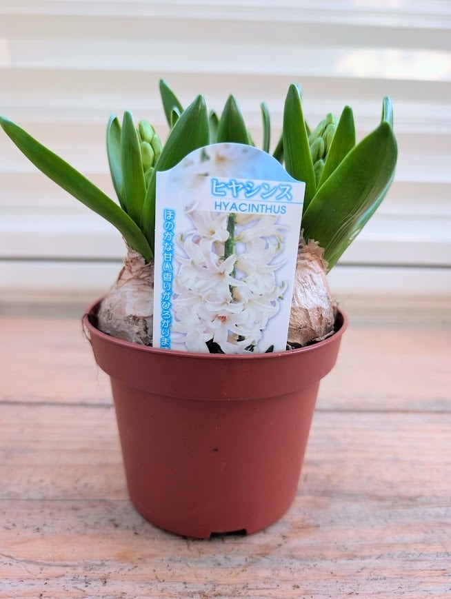 ヒヤシンスの芽出し球根は、春を待つワクワク感を楽しめる、この時期ならではのアイテムです。
