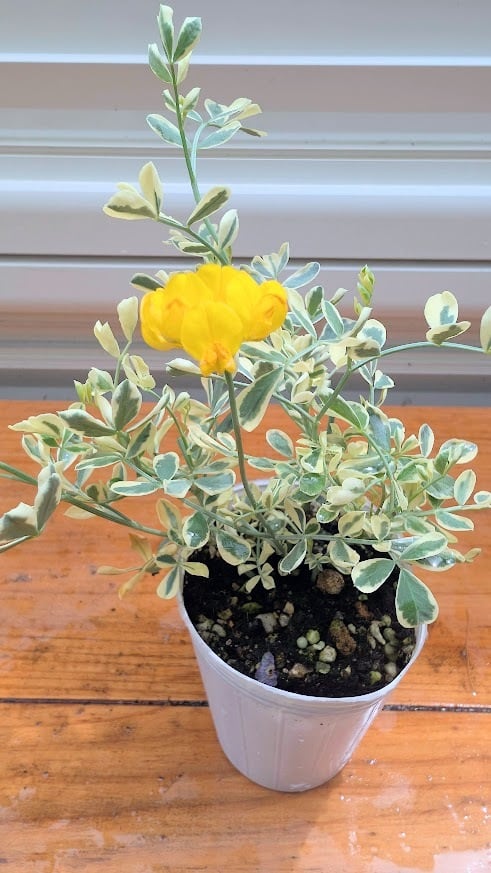 斑入りの葉が明るく、春には蝶のような黄色いお花を咲かせる常緑低木です。繊細な見た目に反して丈夫で、寄せ植えのアクセントや花壇でも重宝されます。寒さに強く、日陰でも育ってくれます。