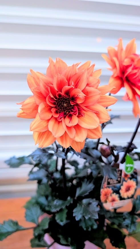 温かみのあるアンバー(琥珀色)の花びらに、シックな銅葉が美しく映える気品溢れるダリアです。