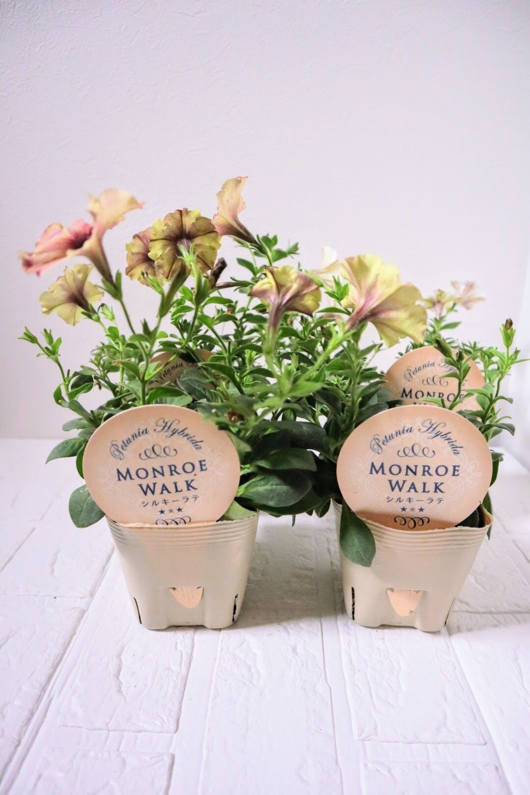 花径は5〜6cmほどで、中心からボルドー色が滲んだように広がり、ベージュよりの黄色が落ち着いた印象のペチュニアです♡アンティークな色味がとても素敵です。一重咲きですが、お花が大きくボリューム満点です!