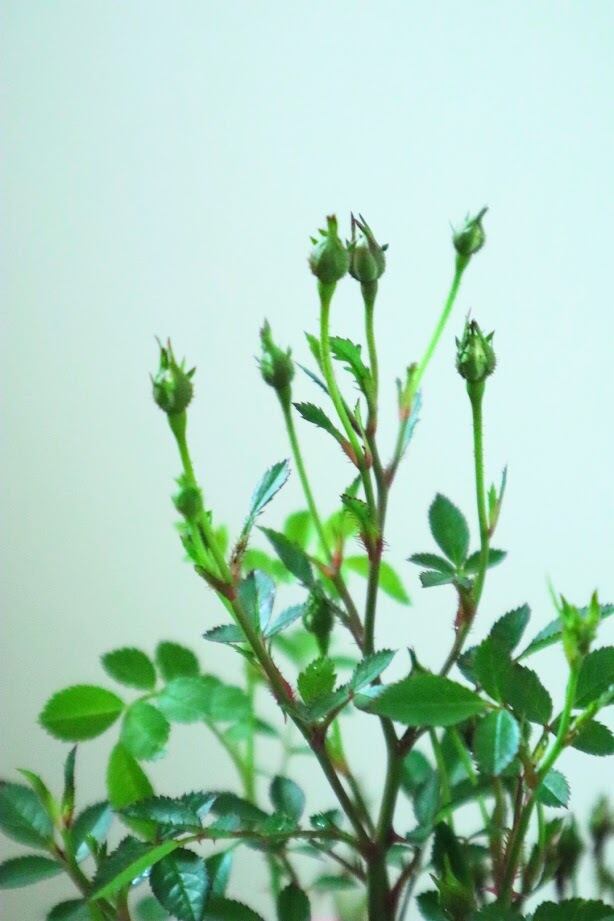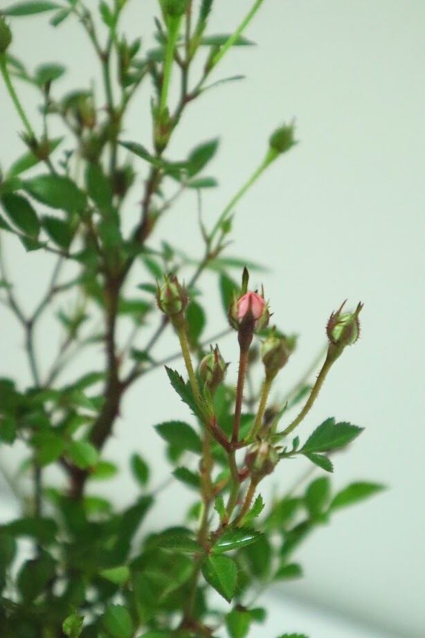 夏季は白、冬季はピンクに花色が変化する極小輪タイプのミニバラです♡
