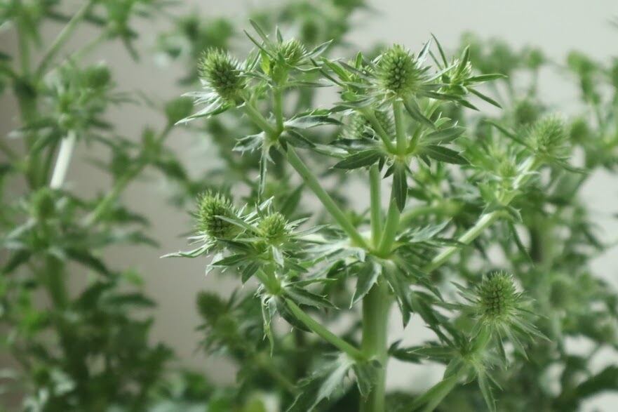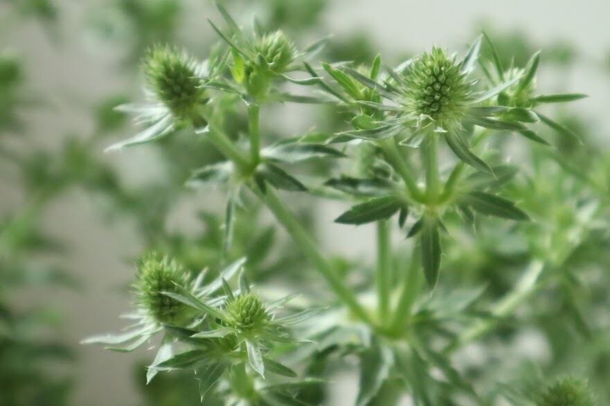 メタリックブルーのとげとげしたお花が咲いて、とっても涼し気で暑い夏にぴったりなお花です♪