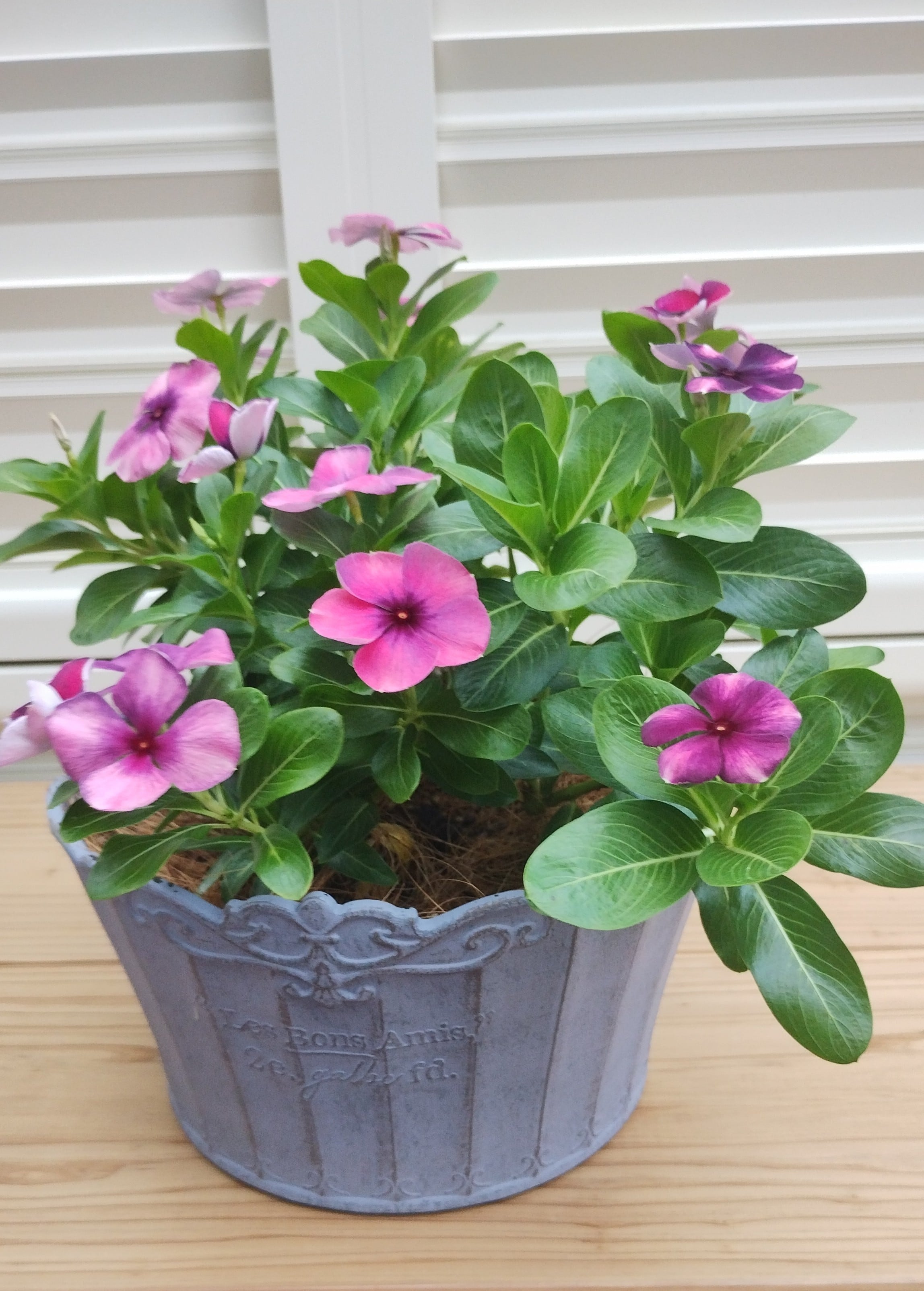 北島園芸さんのビンカ『モネアンティーク』を3株寄せ植えしています♡ 暑くてもお花がどんどん咲いています。 これから気温が下がってくると晩秋までさらにきれいに咲きますよ♫ おすすめです!