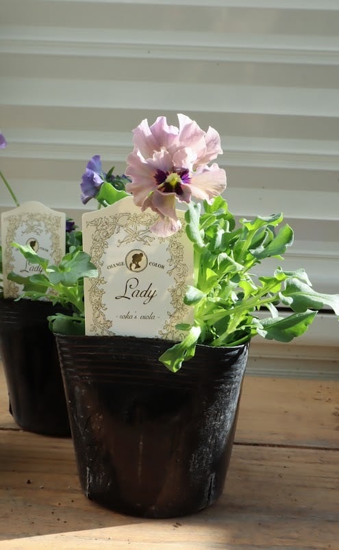 ビオラ『レディ』は、透き通るよなブルーやベージュ、紫のグラデーションがかったカラーがとっても美しいです♡
